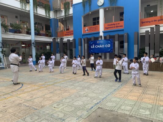 Con rất thích đến lớp vì con được tập võ và được chơi cùng các bạn. Thầy cô dạy con kĩ lắm, còn hay đi xuống đến chỗ con đứng để sửa tấn và kĩ thuật cho con với các bạn. Thỉnh thoảng ngoài tập ra thì các thầy cô hay cho bọn con chơi đuổi bắt hoặc nhảy cừu ạ. Thầy bảo chơi mấy trò đó giúp bọn con tập khỏe hơn, tay đấm được mạnh hơn. Hồi đầu mới học con ngại đến lớp vì con không quen các bạn, nhưng mà sau được chơi trò chơi với tập đôi cùng một hai bạn nên con chơi thân với các bạn ý đến bây giờ luôn. Nhưng mà nếu trong lúc cả lớp đang tập mà bọn con nói chuyện hay làm việc riêng thì sẽ bị nhắc nhở hoặc bị phạt thể lực ạ.