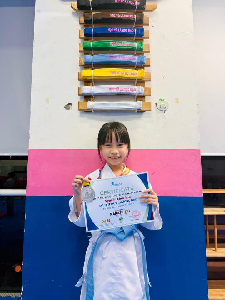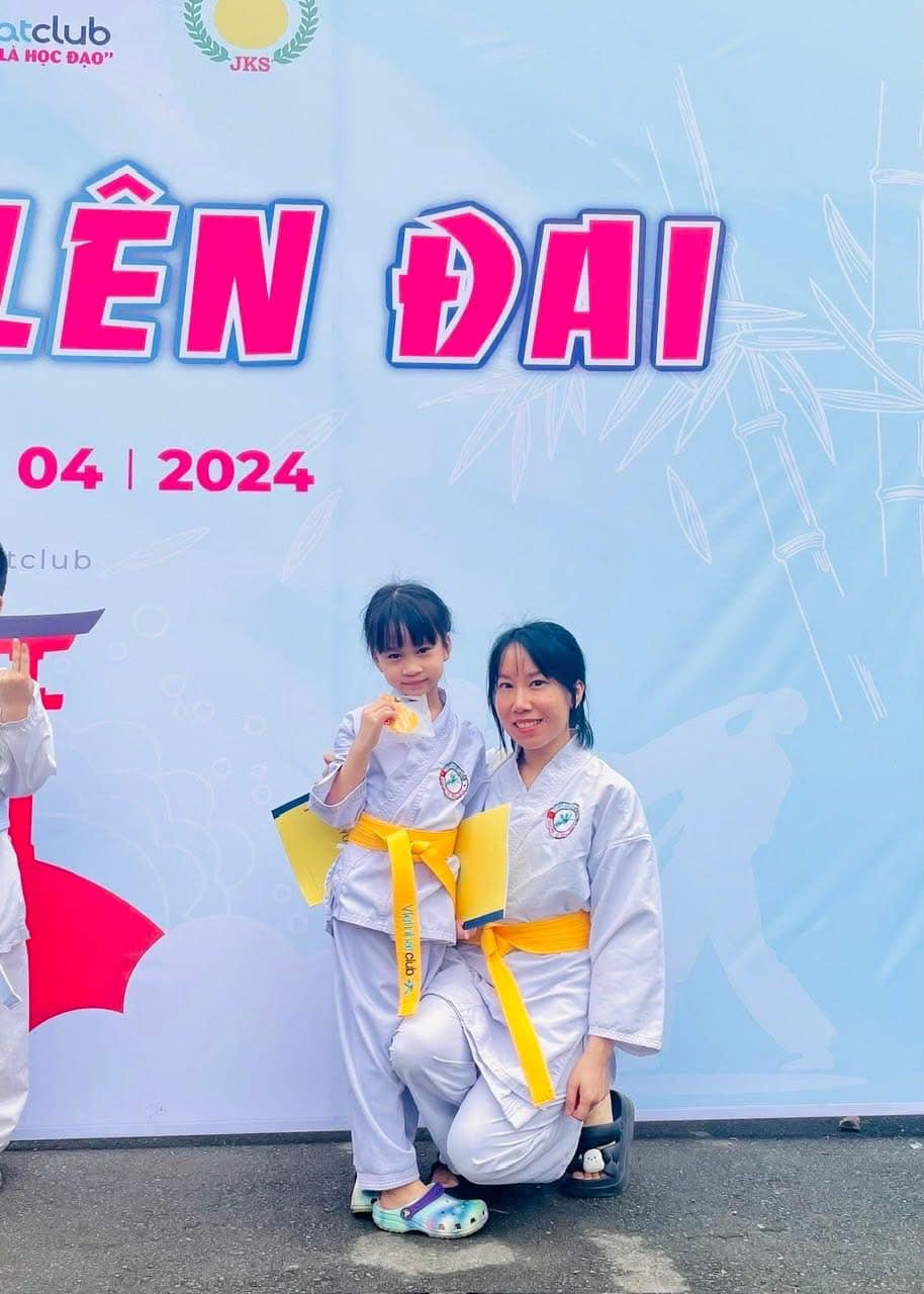 Hồi đầu, tôi vẫn mang tâm lý phụ huynh nhắc bài, dạy con, nhưng chẳng mấy chốc, tình thế hoàn toàn đảo ngược. Bông dần trở thành người “nhắc bài” cho tôi. Chúng tôi cùng nhau vượt qua các kỳ thi lên đai, cùng đeo lên người những chiếc đai mang màu mới. Bao công sức, nỗ lực học tập và rèn luyện đã được công nhận. Vui hơn nữa là trong giải vô địch Karate của Vietnhatclub mở rộng năm 2025, cả hai mẹ con đều giành được huy chương bạc ở hai hạng mục khác nhau. Đây là món quà hoàn toàn bất ngờ đối với tôi và Bông. Khi được xướng tên, tôi tưởng mình như đang bay lên, hân hoan, rạo rực nở thành hoa trong lòng. Hoá ra cảm giác “chiến thắng” sau bao nhiêu mồ hôi nước mắt, nỗ lực để không bỏ cuộc là thế. Hoá ra cảm giác được gặt hái “trái ngọt” sau bao nhiêu công sức gieo hạt, tưới chăm bền bỉ là thế.