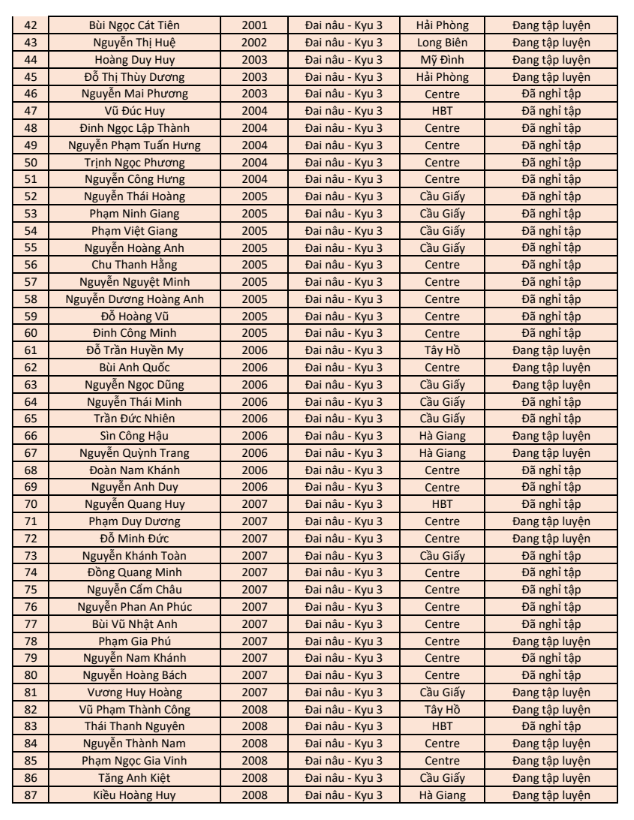 Danh sách Thành viên đạt Trình độ Đai Nâu & Đai Đen Vietnhatclub