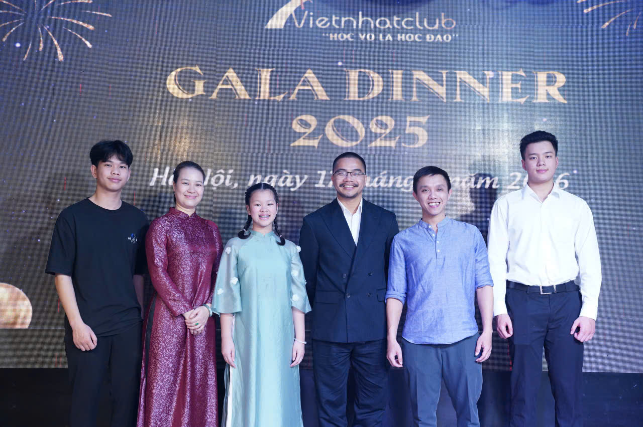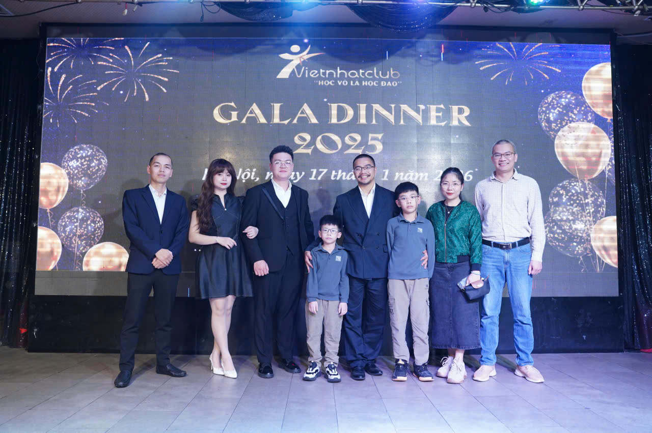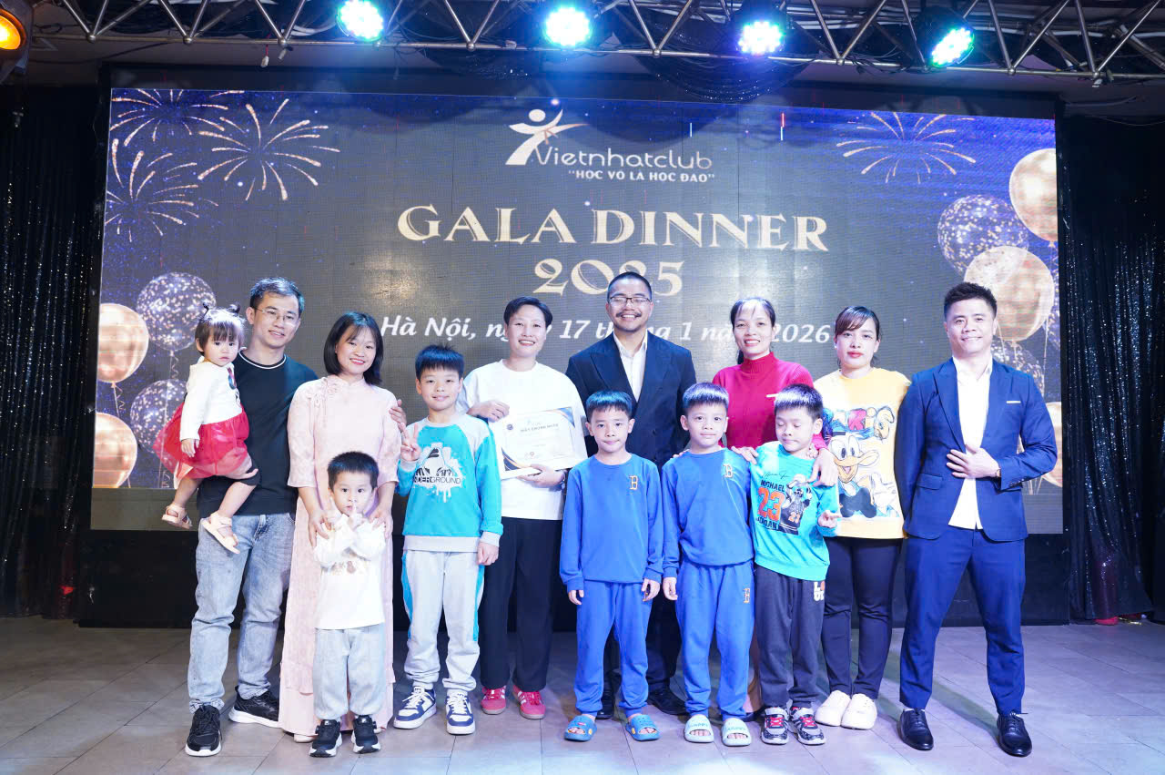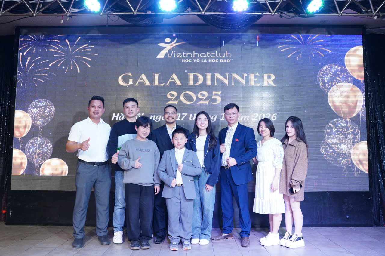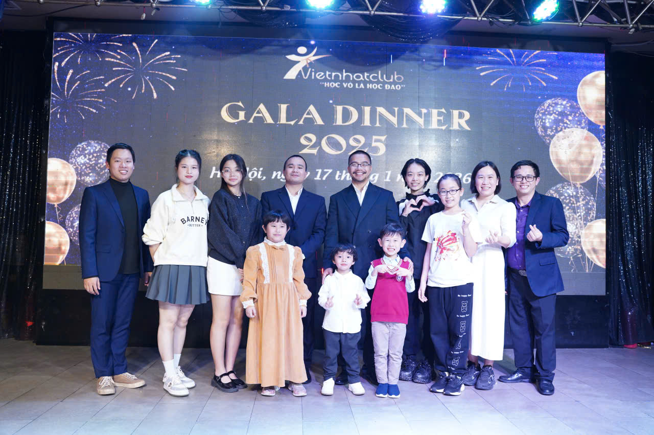 Trong không khí trang trọng và tràn đầy cảm xúc, vừa qua, Vietnhatclub đã tổ chức thành công đêm Gala Dinner với sự góp mặt của hơn 100 khách mời. Buổi lễ là dịp hiếm hoi để đại gia đình Vietnhatclub – từ các huấn luyện viên , các bậc phụ huynh đến các em học sinh thân thiết – cùng ngồi lại bên nhau, chia sẻ những câu chuyện về nghề, về võ đạo và những kỉ niệm đáng nhớ trong suốt năm qua.